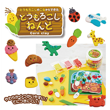 とうもろこしの粉からできた、やわらかく手につきにくいねんどです。