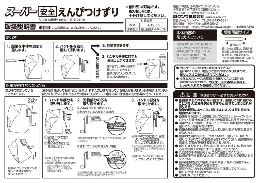 ⇒ 7cm以下の鉛筆を差しこむと取れなくなり、修理が必要です。 修理対応のご案内ページをご覧ください。