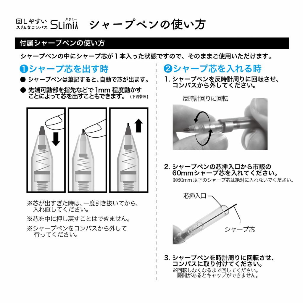 スリミーコンパス(CP233)の使い方が分からない。芯が詰まる。