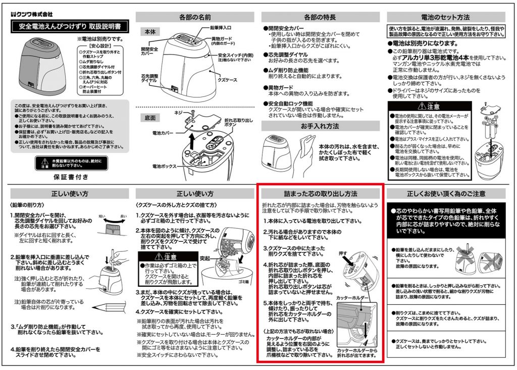 ⑤鉛筆を差し込んでも作動しない場合は、取扱説明書の「詰まった芯や短い鉛筆の取り出し方法」をご覧ください。(RS041のみ)
