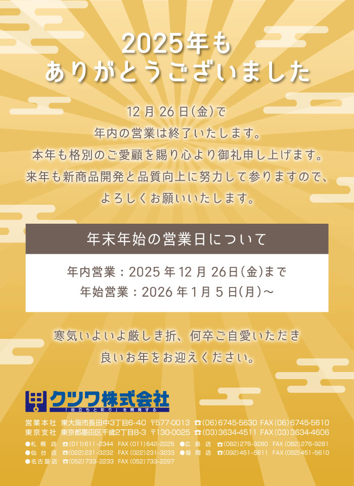 お問い合わせフォームからの送信は可能ですが、ご返信は2025年1月5日(月)から